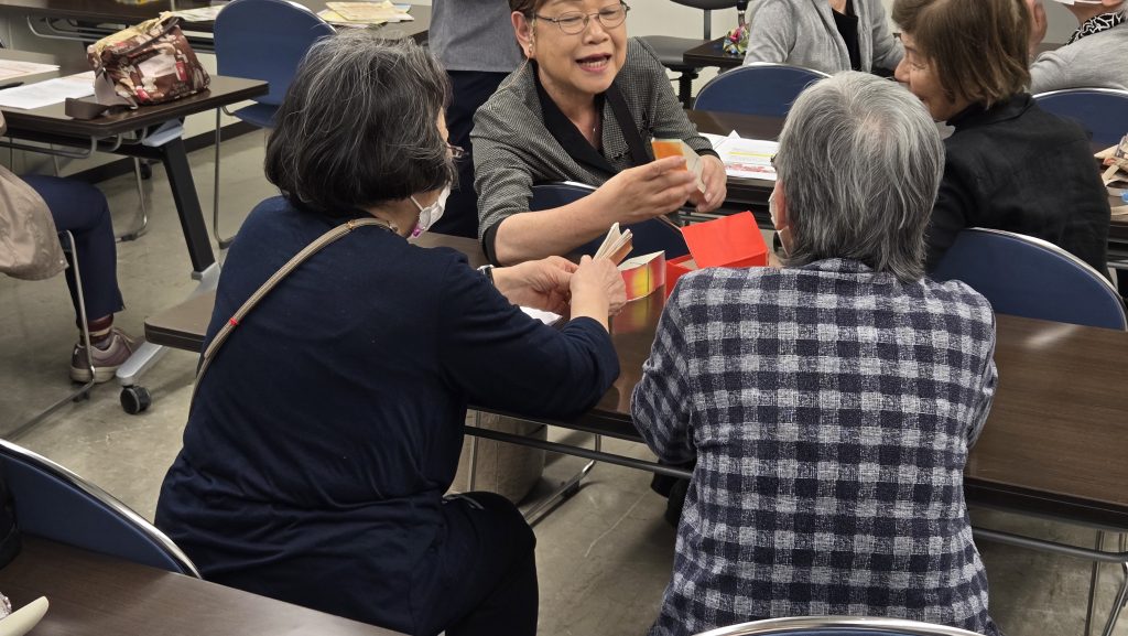 休憩後は認知症に関する学習会となり、認知症の典型的な症状や、家族の関わり方についても学習しました。また、「おかしいな?」と思ったら早めに病院に行くことで、進行を止めたり、遅らせるためにも非常に重要ということでした。「笑う」ことが認知症予防に効果的ということで、小竹さんが作った「びっくり箱」が登場し、参加者たちも大笑いする中、講義は終了しました。
