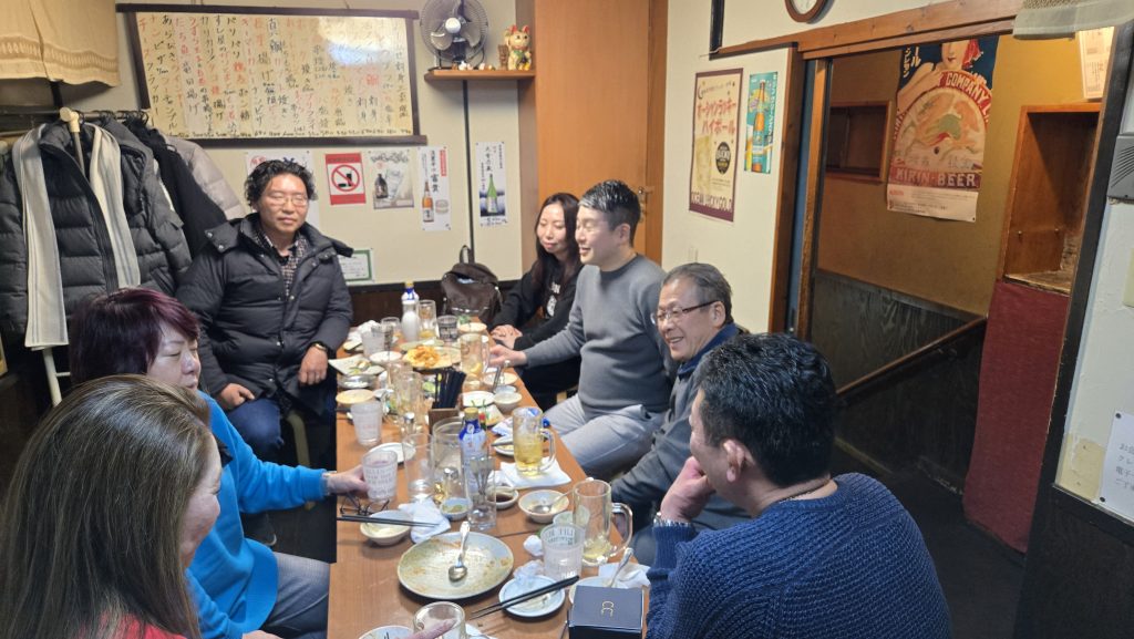 ボウリング後は、会場を近くの会員さんのお店に移し、新年会がスタートしました。「ボウリングより、こっちを楽しみにしていた」という参加者も多く、乾杯から大いに盛り上がりました。
