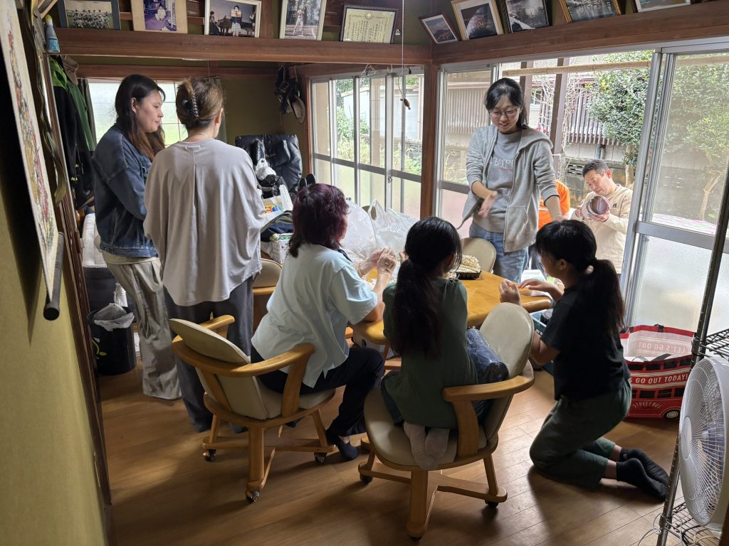 当日は、現地のスーパーで待ち合わせをし、必要な物をみんなで買い出ししました。買い物カゴ4つがいっぱいになるほど買い物をし、宿泊先に到着。その後、近くにある日帰り温泉施設「とっぷさんて大洋」で温泉に入りました。
